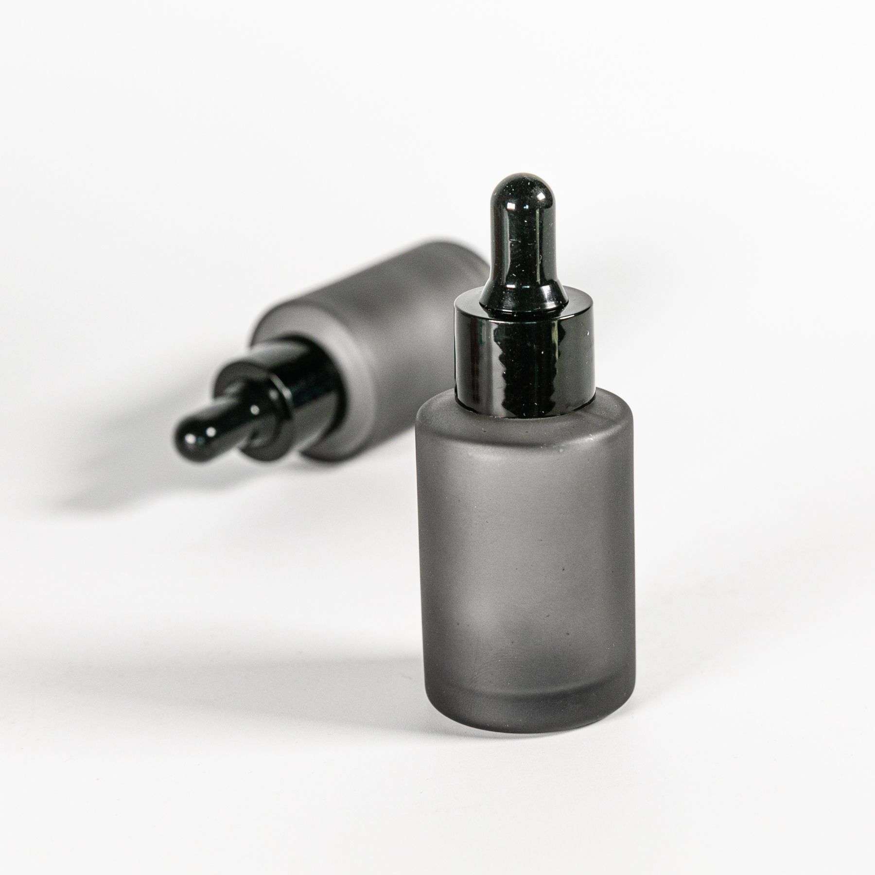 Флакон скляний чорного кольору, який містить також пластмасову кришку зі скляною піпеткою. Ємність вдало підходить для різноманітних косметичних засобів, таких як: ефірні олії, емульсії, сироватки, засоби на масляній основі і тому подібні інші продукти. Досить часто такі флакони використовують задля зручного дозування та раціонального використання компонентів.