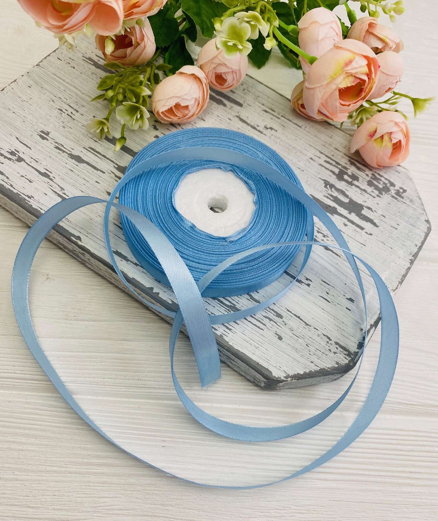 Лента атласная цвет голубой (бабина)
