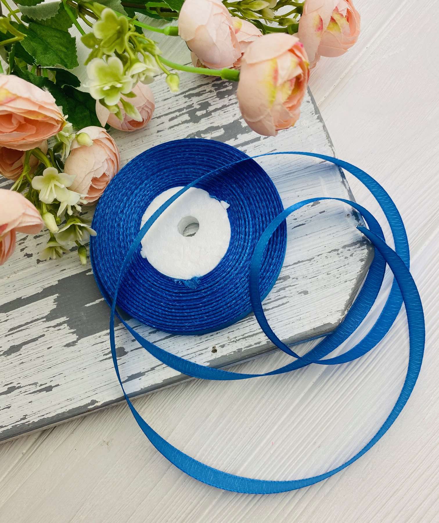 Лента атласная цвет средне-синий (бабина)