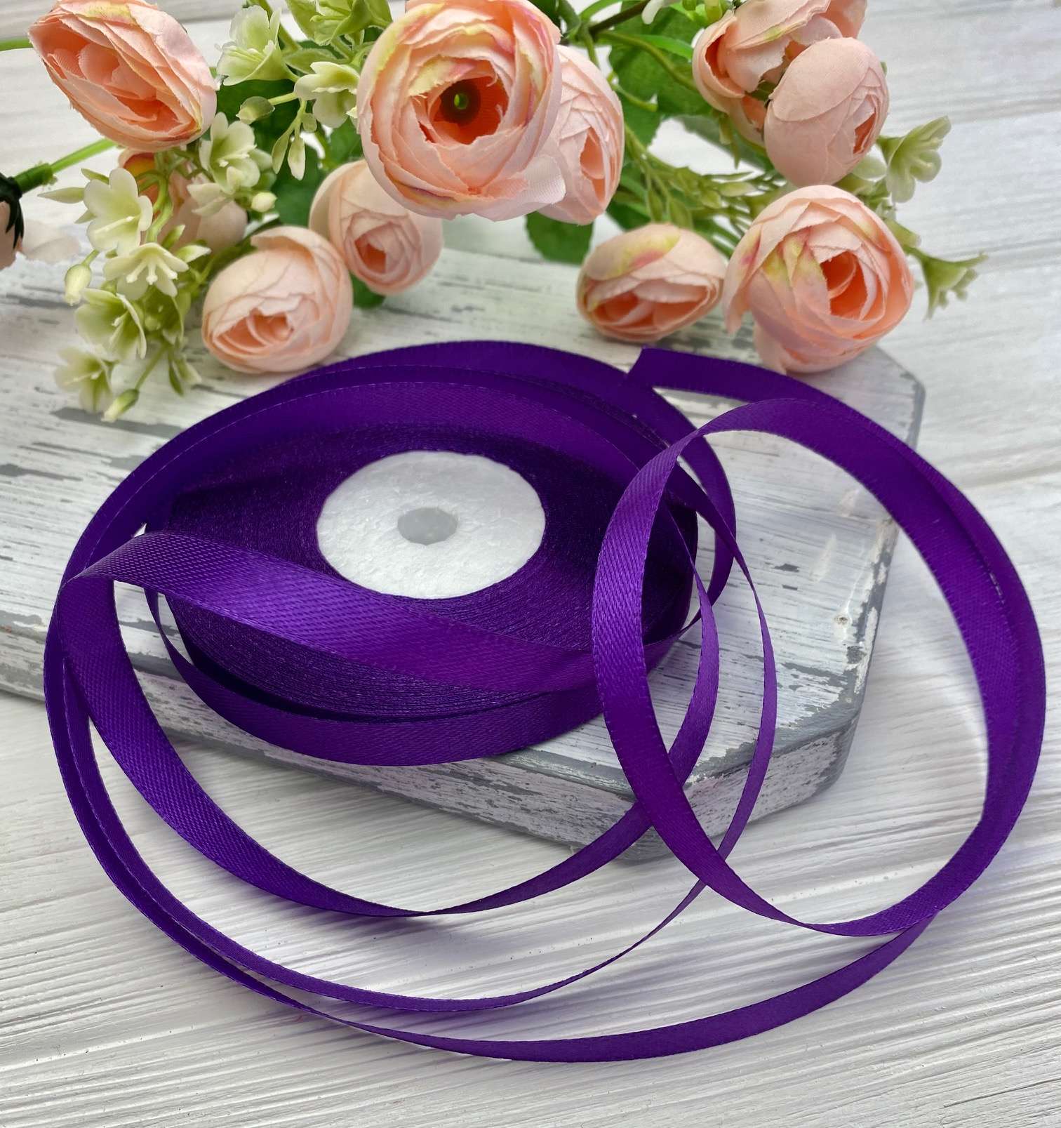 Лента атласная цвет темно-фиолетовый (бабина)