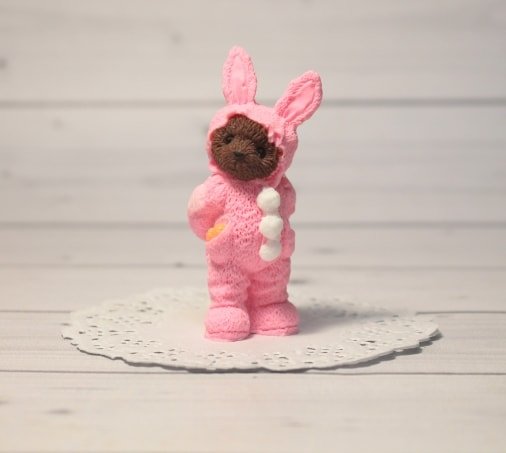 Вес готового изделия » Мишка в костюме Зайчика » : 35-40г