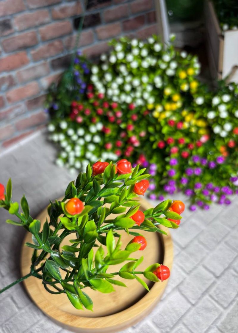 Гілочка — 24 см з ніжкою, квіткова частина — 11 см, розмір однієї ягідки — 0,8см