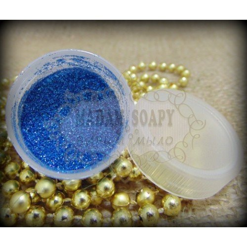 Глиттер – это мелкий сухой порошок из блесток. Блёстки насыщены высоким коэффициентом отражения, при этом они создают сверкающую, мерцающую и блестящую поверхность. Глиттер можно использовать с любым связующим или клеем предварительно тщательно смешать и использовать при работе в любой технике мыловарения и живописи, просто нанося эту смесь кистью, как обычную краску. В мыле ручной работы также блёсточки можно добавить и в жидкую основу при нагревании, и покрыть сверху мыло дополнительным блеском для праздничного вида.  Для того чтобы улучшить эффект можно использовать другой метод: нанести клей на необходимую зону поверхности, и пока он не высох хорошо посыпать на липкий слой глиттером.