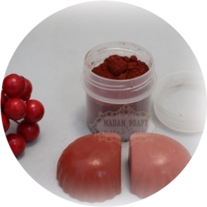 При использовании этого красителя, основа для мыла окрашивается быстро и равномерно. Частицы пигмента не выпадают в осадок, так как предварительно растворяется в глицерине примерно 1/2, где две части жидкий глицерин (базовое масло).