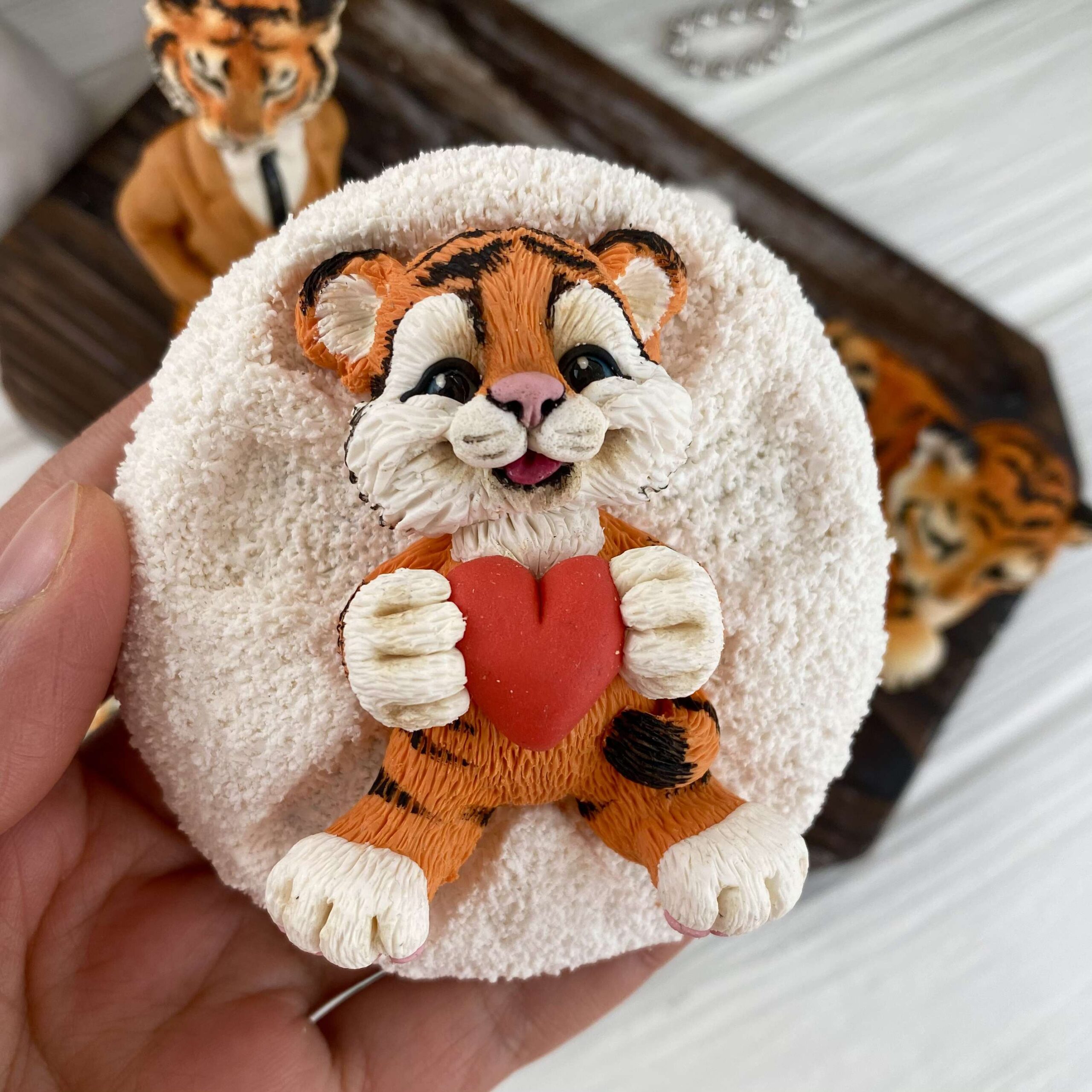 Вес готового изделия Тигр на снегу с сердечком 3д: 80 гр.